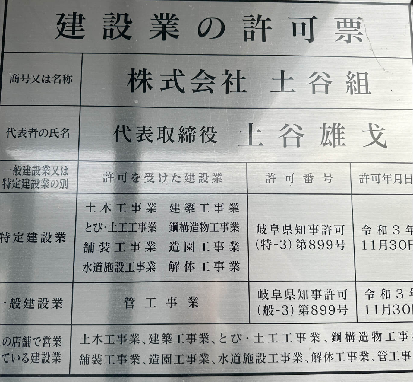 | 許可 | 建設業:岐阜県知事(一般・特)第899号 |